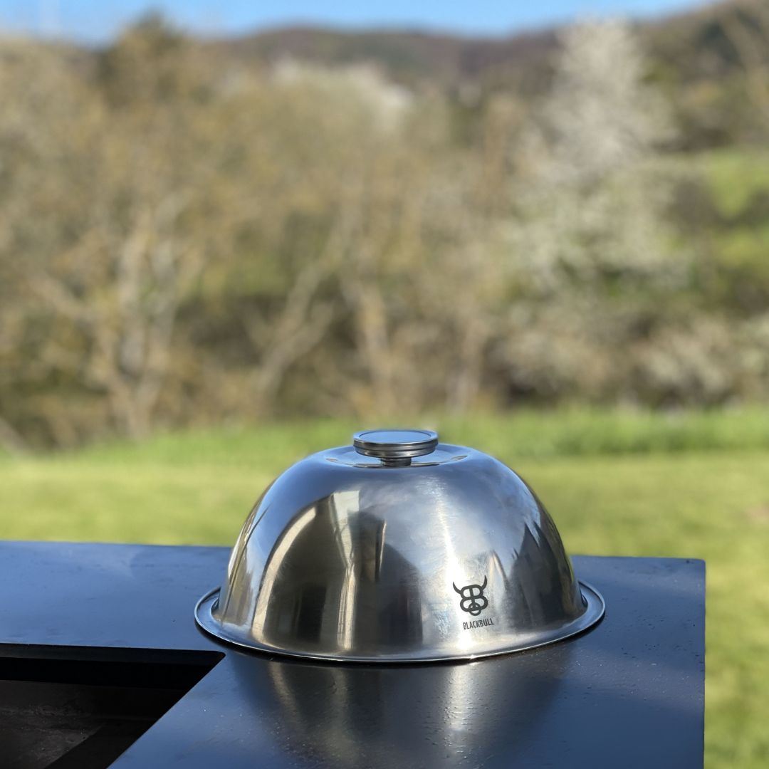 Die Cloche ist ein unverzichtbares Zubehör für Ihren BigQube Feuerplattengrill. Von Zeit zu Zeit bedarf es beim Grillen einer Abdeckung des Grillguts. Besonders für Burger Patties ist sie ideal, um optimale Grillergebnisse zu erzielen. Die Cloche sorgt für eine gleichmäßige Hitze, wodurch das Fleisch besonders saftig bleibt und der Käse gleichmäßig schmelzen kann. Des Weiteren eignet sich die Cloche perfekt für beispielsweise Lachs.