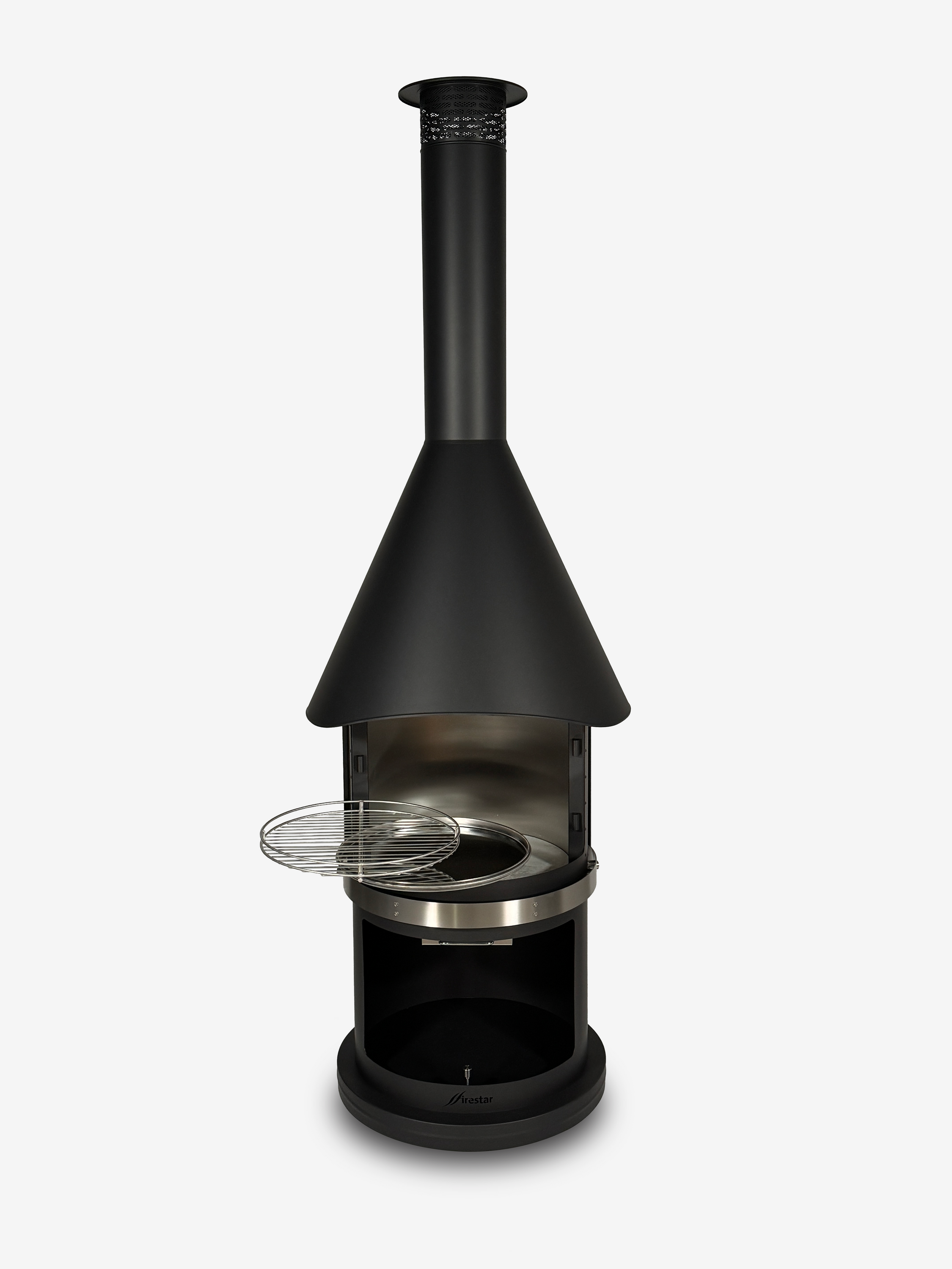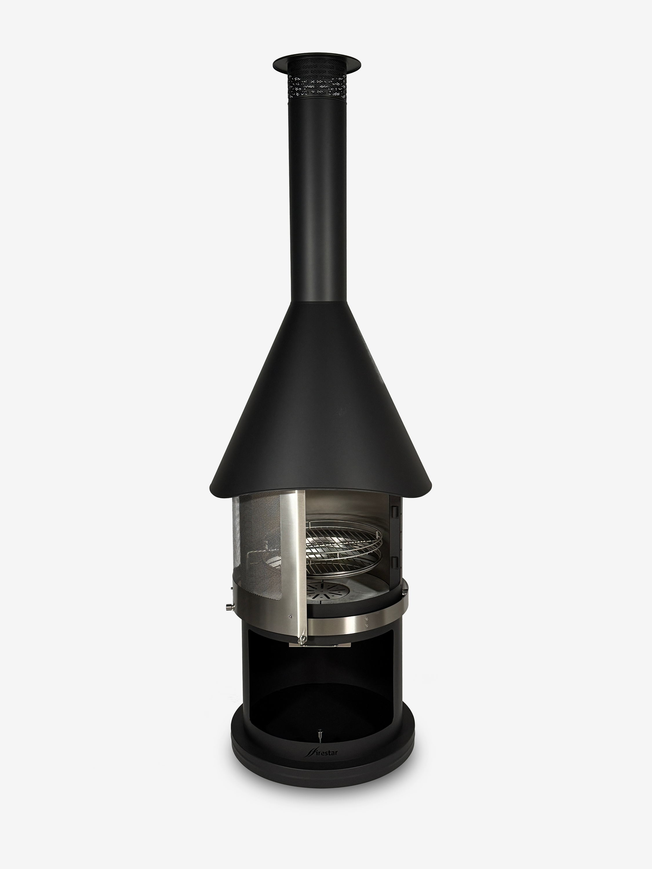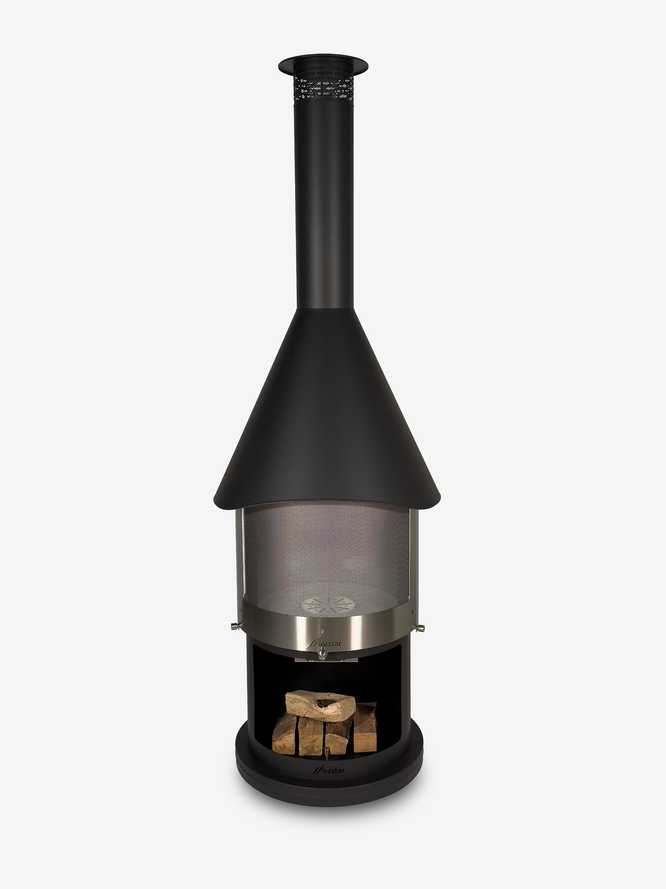 | Ausstattung: | doppelwandiger Brennraum, drehbar, fahrbar, mit Aschelade, mit Grillrost, mit Holzfach |
