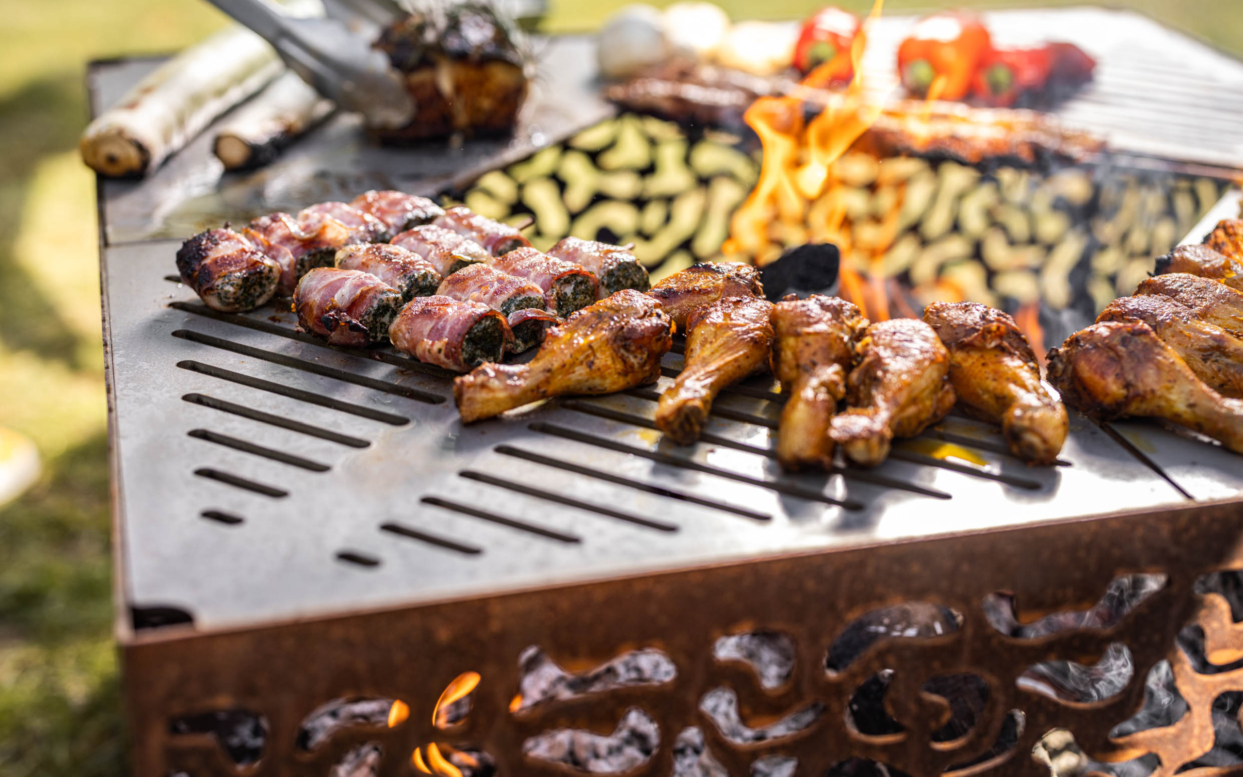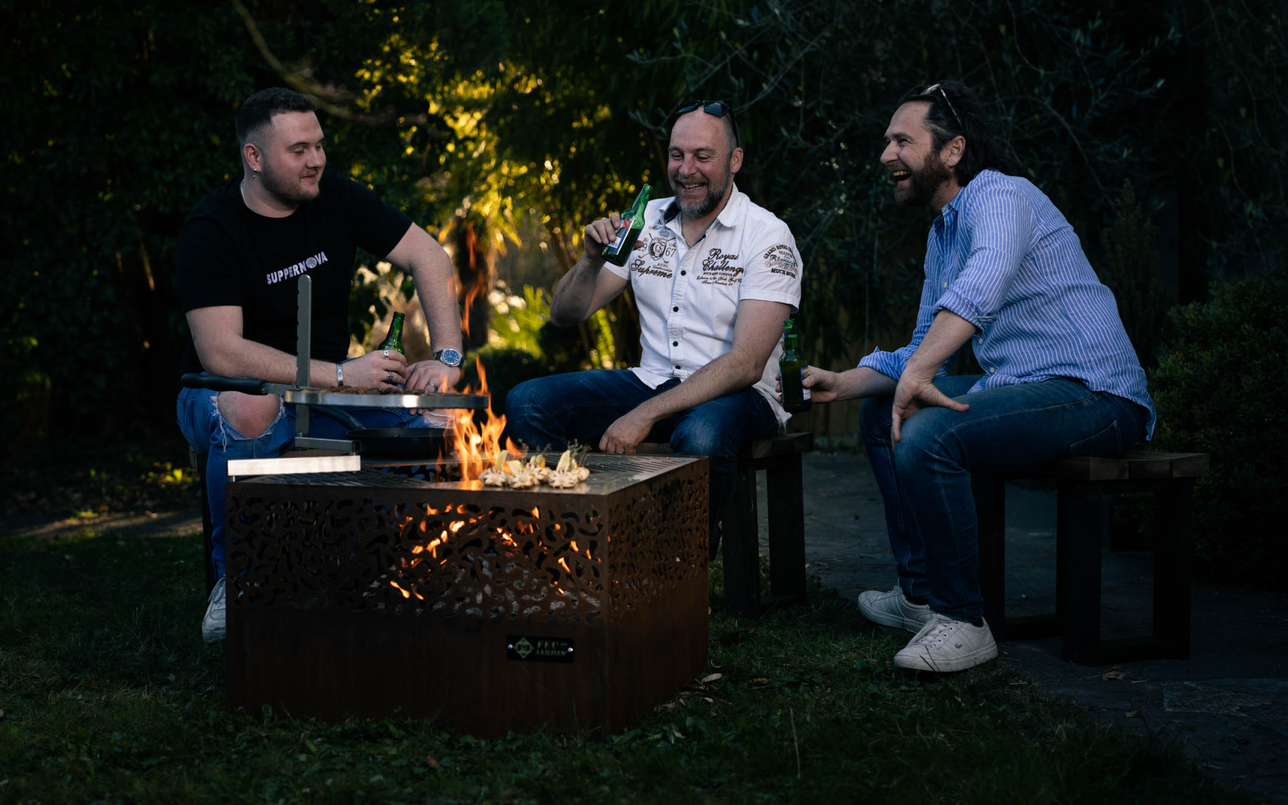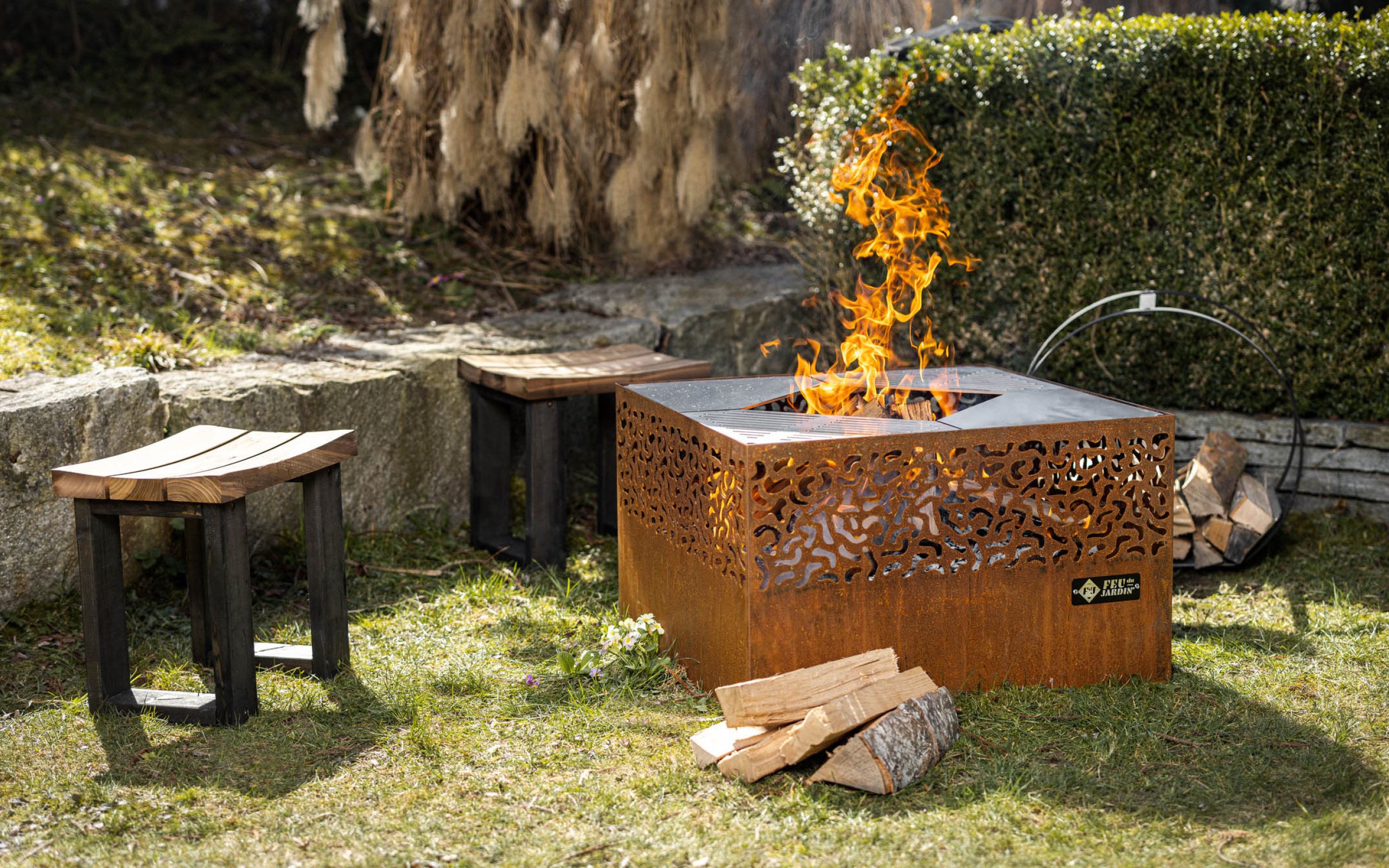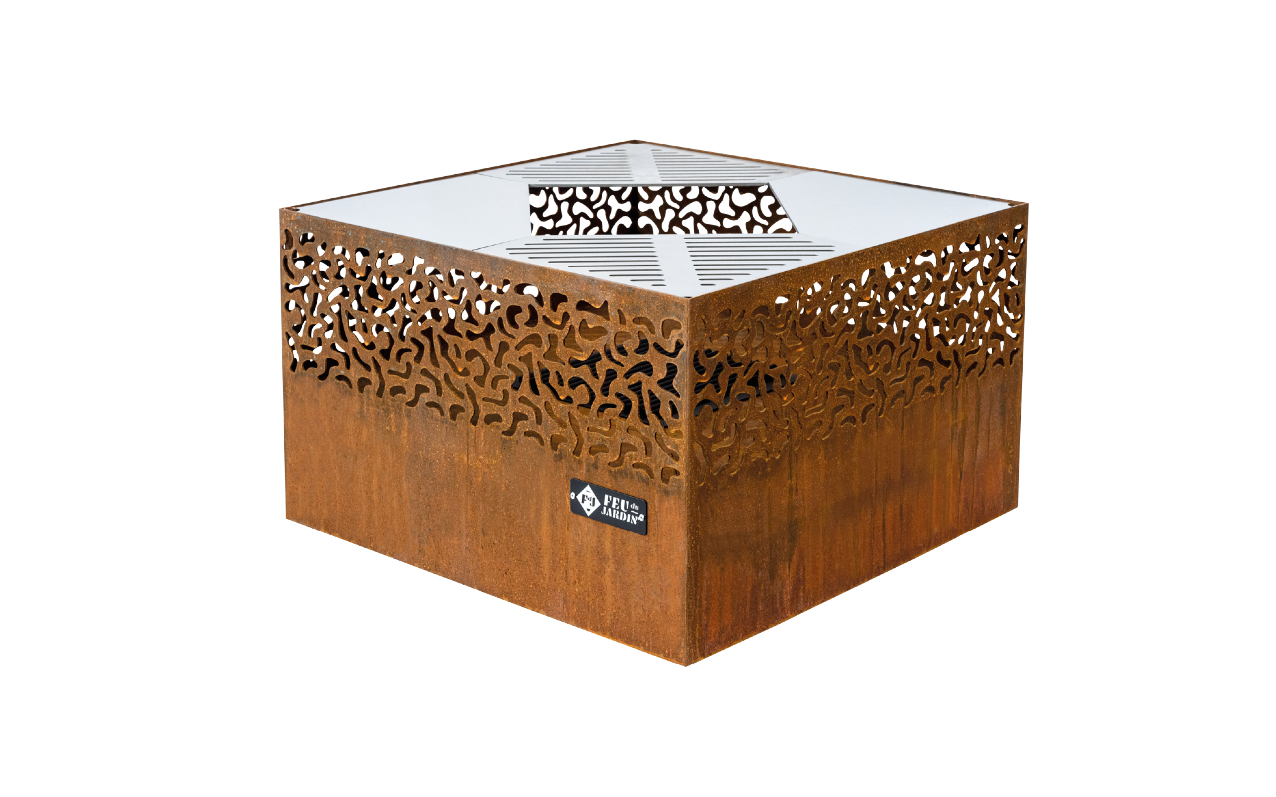 Der Carre 750 in trendiger Rostoptik ist eine Feuerschale, die mit ihrem wunderschönen Muster jeden Abend zu einem einzigartigen Erlebnis macht. Seine Kombination aus Feuerstelle und Grillfunktion macht ihn besonders beliebt. Die massiven und vierteiligen Edelstahlplatten überzeugen durch Qualität, sodass der Carre 750 jedem Grill Konkurrenz macht. Als zusätzliches Plus verfügt die Feuerschale über eine passende metallische Abdeckung, die vor Nässe, Staub schützt und das rustikale Gesamtbild bewahrt.