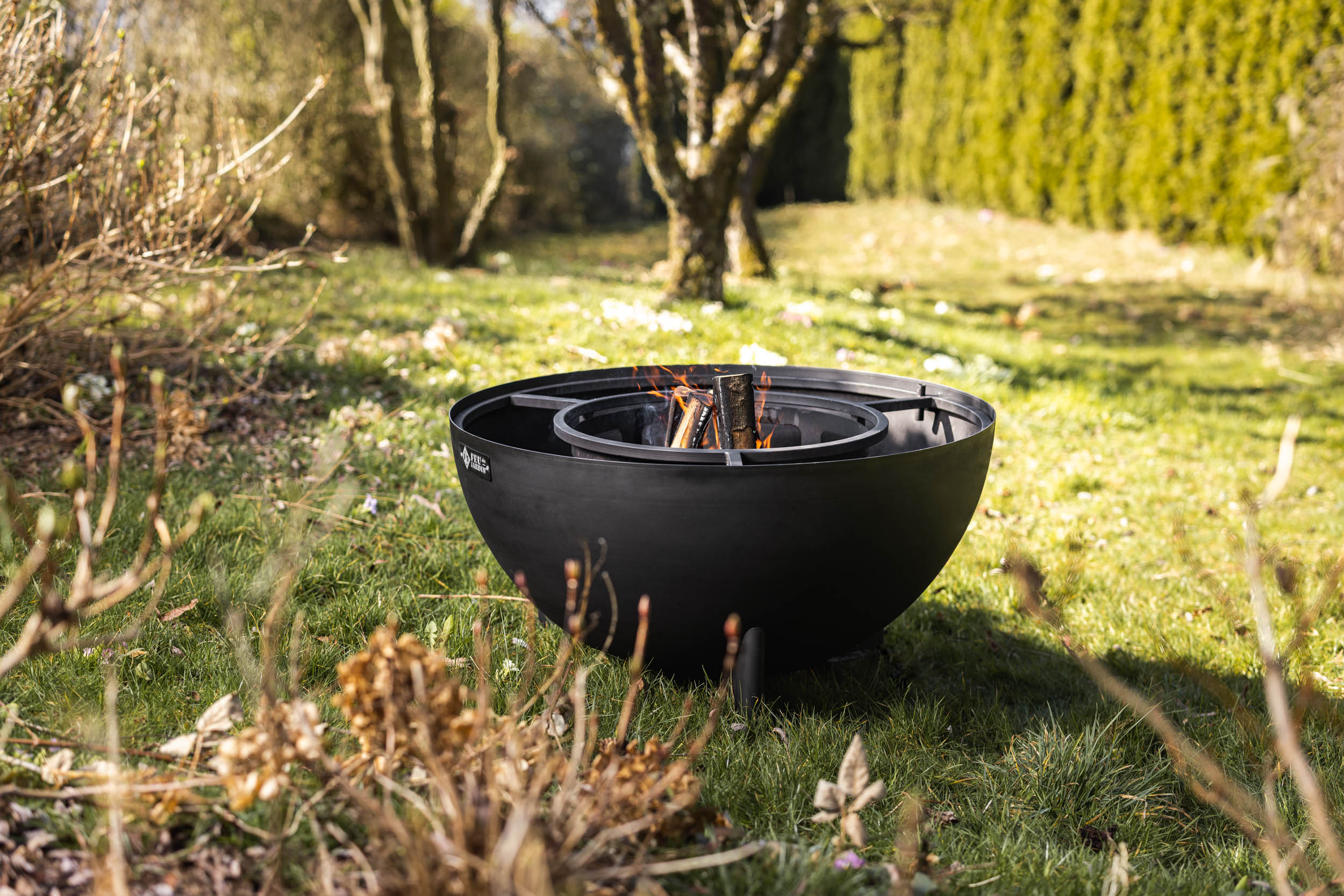 Mit dem Modell "Feu du Jardin TRIA" erwerben Sie die effiziente Feuerschale, welche Sie mit Holz und mit Holzkohle entflammen können.