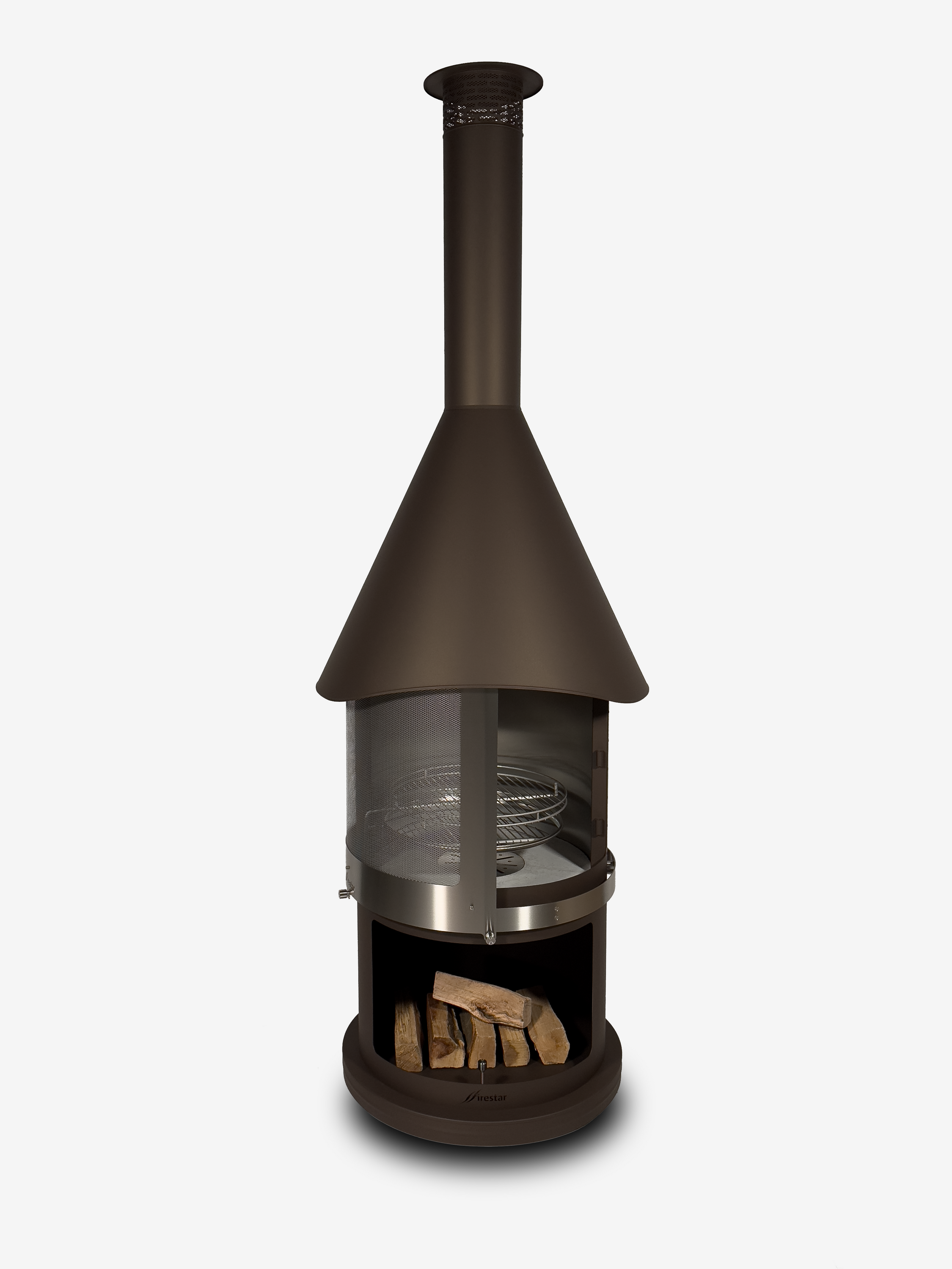 Der Grillkamin Firestar 800 Mesh ist vielseitig einsetzbar und besticht durch seine hochwertige Verarbeitung „made in Germany“ und hervorragende Brenneigenschaften. Die doppelwandige Außenhaube, welche bei Bedarf abgenommen werden kann, erzeugt eine angenehme Strahlungswärme.