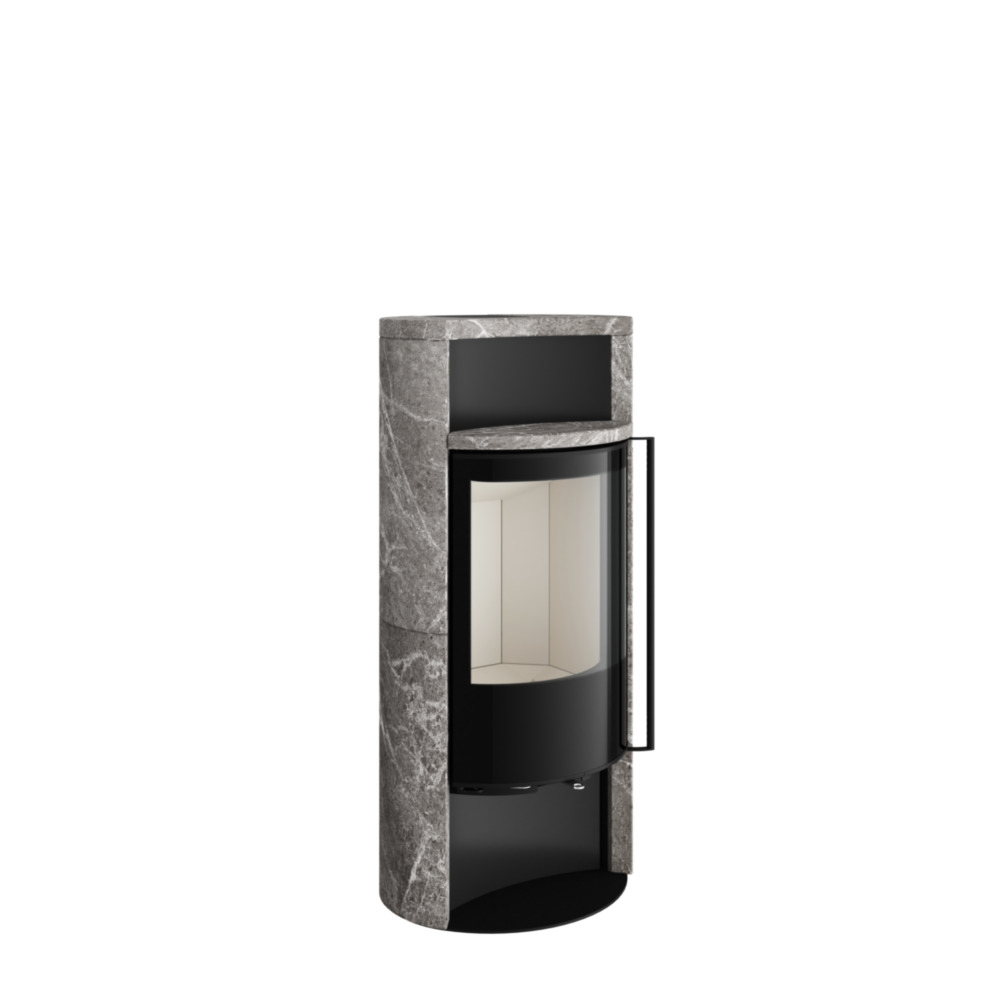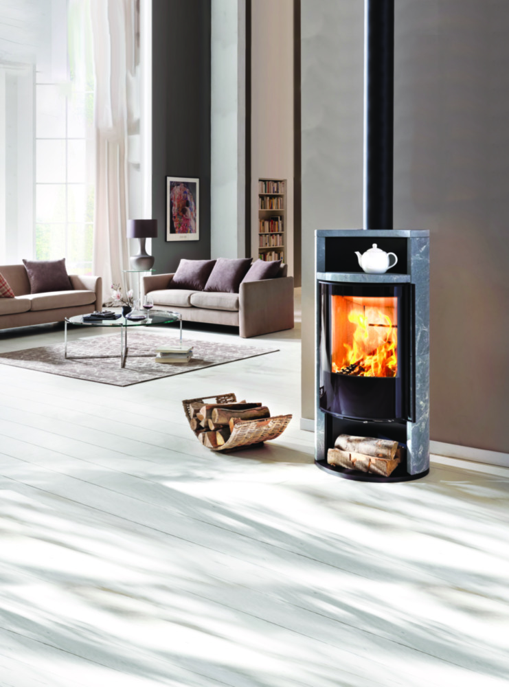 Die Steinverkleidung speichert die erzeugte Wärme des Feuers und gibt sie langsam und gleichmäßig an die Umgebung ab. Die ovale Form des Kaminofens fügt sich elegant in jeden Raum ein, während ein integriertes Warmhaltefach und ein Holzfach die Funktionalität des Sino City unterstreichen.