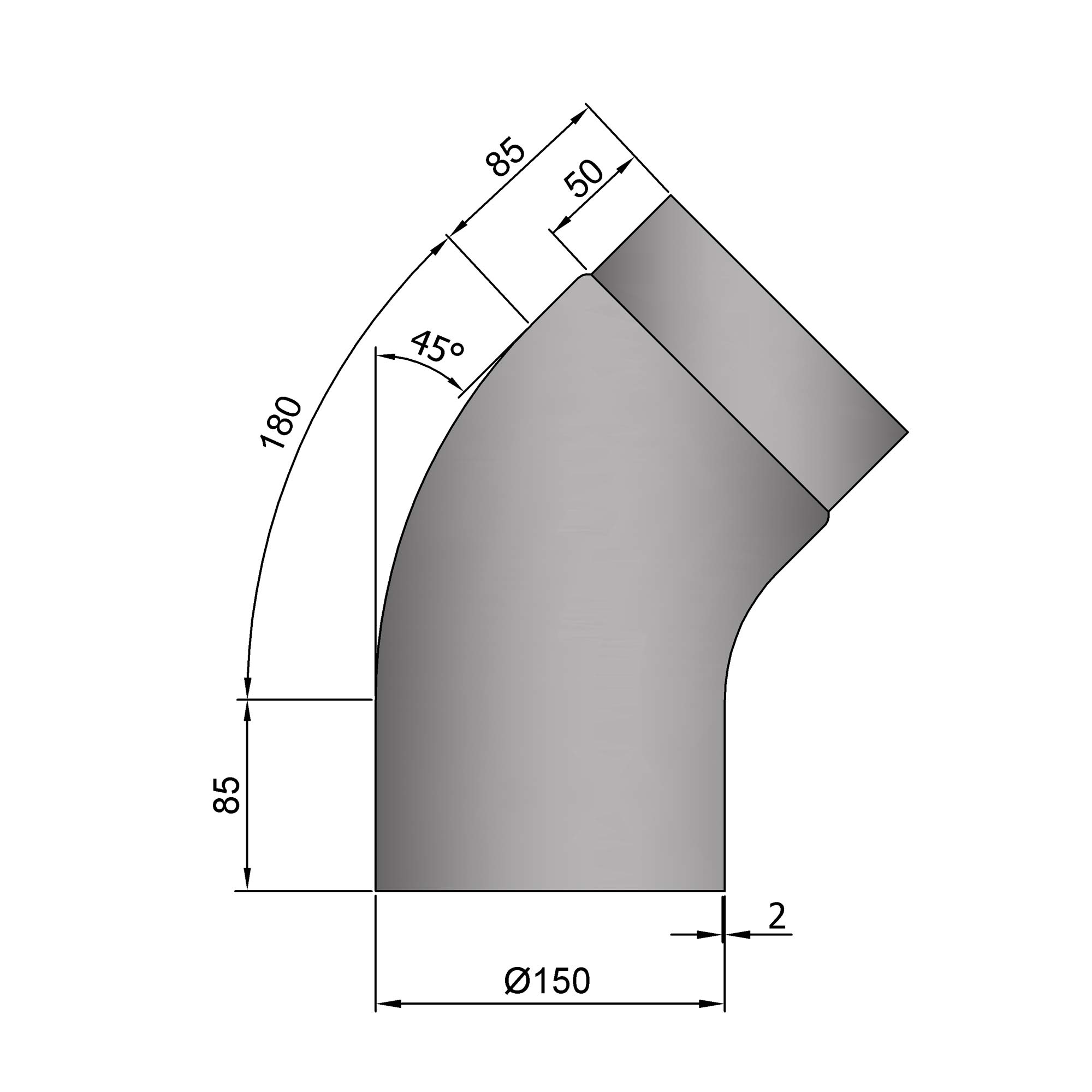 Produktinformationen "Rauchrohrbogen Stahl 45° Ø 150 mm hellgrau, gezogen"