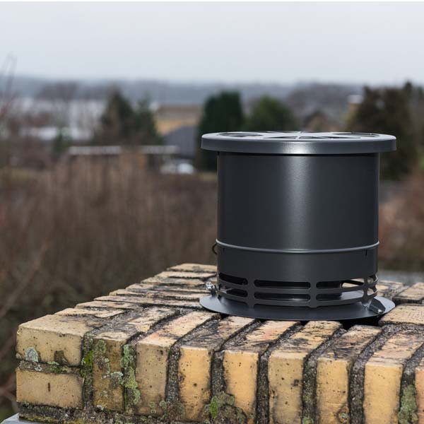 Das Modell eignet sich für runde Schornsteinrohre mit Ø150–Ø200 mm, egal ob Edelstahl- oder Elementschornstein mit Innenkern. Der Durchmesser lässt sich einfach über drei verstellbare Laschen anpassen. Wenn Sie einen gemauerten, viereckigen Schornstein besitzen, kann der BlueChimney problemlos mit einer passenden Blende oder einer viereckigen Flanschplatte montiert werden (siehe Zubehör unten).